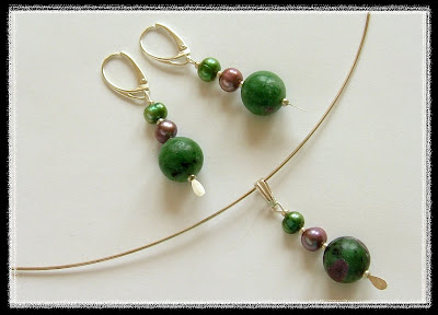 Zoizyt rubinowy, perełki rzeczne, srebro...